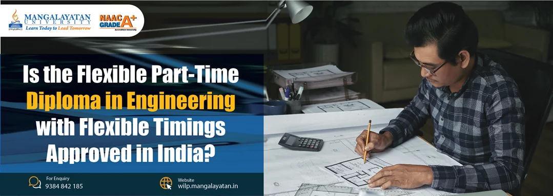 This program is designed for individuals with relevant work experience seeking to pursue advanced education. Working Professionals with ITI having a minimum of 45 % marks or its equivalent and one year of work experience are eligible for Diploma programs. Those interested in the B.Tech program must have passed the Diploma with a minimum of 45% marks or its equivalent and should have one year of work experience.